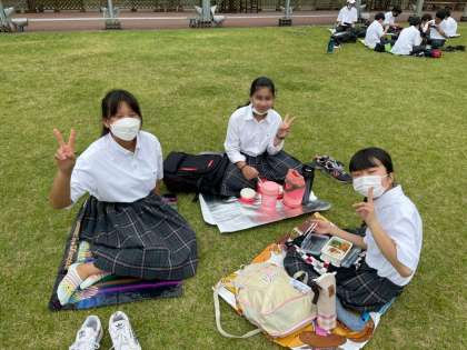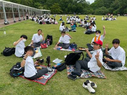 植物園では、昼食を食べた後、自由に散策をしたり芝生で体を動かしたりしました。中には、『普段なかなか遊べないので…』と言っている生徒もいました。いい気分転換になったようです。