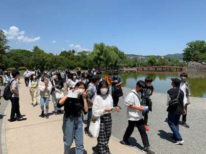 班別行動出発しました。グループで記念撮影をしたり、天守閣にのぼってお殿様気分をあじわったり…。楽しんでます!