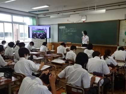 8月29日(月)より3週間の予定で、2名の社会科教員を目指す教育実習生が来られていました。教科指導に関して担当教員の指導を受けて授業を行ったり、授業以外の教職員の仕事の様子なども見てもらっていました。この経験が大学卒業のキャリアつながることを期待したい思います。