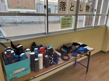 なお、懇談会期間中、学校での落とし物を職員室前の廊下に展示しています。水筒や衣類などお心当たりがあればぜひご覧ください。