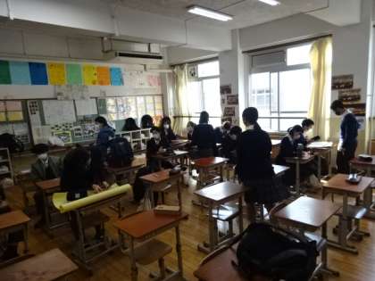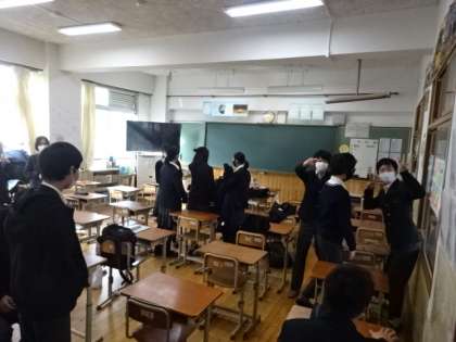 昨日、公立中期選抜も終わり、ホッとした表情を見せて談笑している朝学活前の様子です。