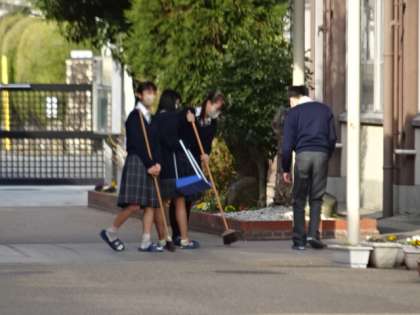 埃まみれになりながら、昇降口などの美化活動も