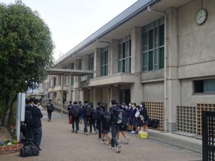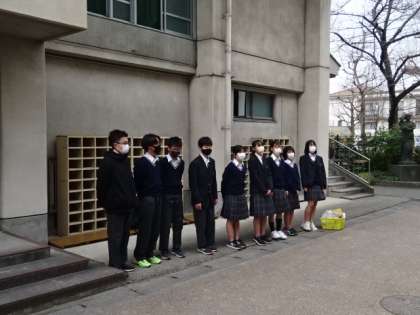 今日も生活委員会のみんなが、校門でのあいさつと「登校時間まであと○分」と時計とパネルで呼びかけ、遅刻しないように取り組んでいます。