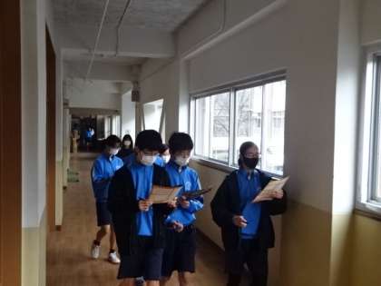 謎を解きながら、校舎内を巡っています。