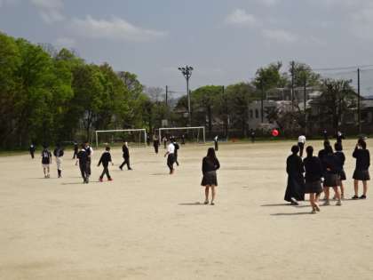 2・3年生は、早速グラウンドに出て体を動かしていました。1年生は学年校舎の中で、小学校の時の友だちと話が弾んでいる様子でした。