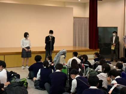 入館式でスタッフの皆さんにあいさつをします。