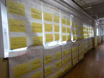3年生が総合的な学習の時間に,個人でまとめた探究内容の展示です。