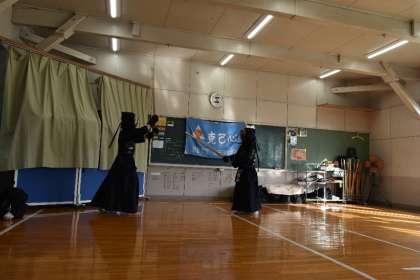 瞬間を見逃さずに打ち込む竹刀。集中しないとね!