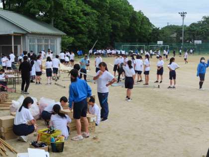 午後 明日の体育大会に向けて、多くの生徒が準備をしてくれました。割り当てられた分担をテキパキと協力しなら取り組んでいました。