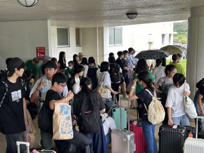 それぞれお世話になるお家に出発しました。天候は小雨です。