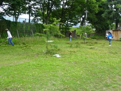 ボランティア集まっていただきました大人の方々にも、草刈りなど校内を美しくする活動をしていただきました。