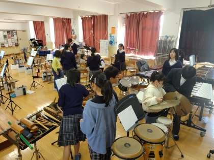 楽器ごとにグループに分かれて演奏の仕方を伝えます。
