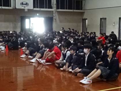 後半の生徒会・部活動オリエンティーションです。生徒会や各部活動の2・3年生の生徒たちが企画・準備・練習をして活動について紹介の発表をしてくれました。