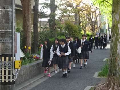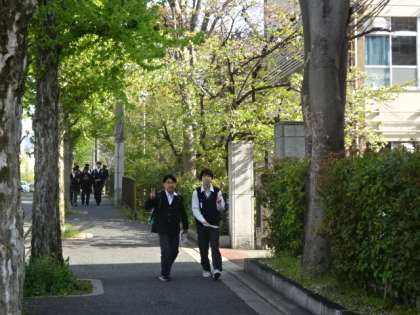 新緑の中の登校風景