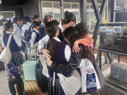 あっという間の民泊体験、民家さんと抱き合ったりしながら別れを惜しんでいます…。