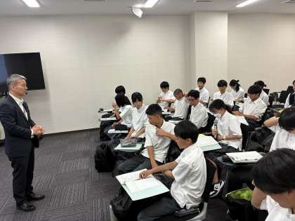 こちらのグループは、京セラ本社に行き、京セラの仕事に対する想いを学びました。資料館にある創業者の言葉から、自分たちが印象に残った言葉を選び、その理由を一人一人発表しています。「誰にも負けない努力をする」「一日一日を大切に生きる」など、仕事に関わらず人生で大切なことを気づき、学んでいました