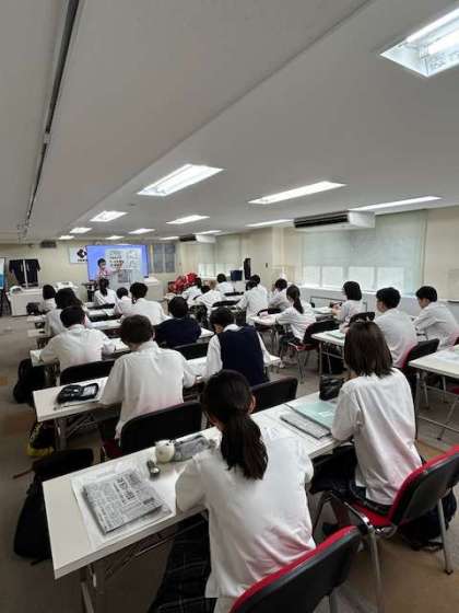 京都新聞の沿革を伺い、新聞ができるまでの一連の流れを学びました。普段入らせてもらうことができない編集部の中も見学させていただき、カメラを触らせていただいたり、実際のドローンを見たり...。「すごーい!知らなかった!」「かっこいい〜!」という声がたくさん聞けました。