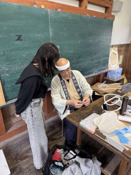 このグループでは、実際に水引職人として活躍されている職人さんに教えて頂きながら、五角形の水引細工・あわじ結びに挑戦しています。