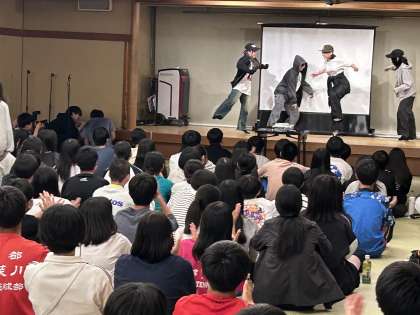 ダンスパフォーマンスや水泳部の背中でせんべいを割る特技などが披露されました。