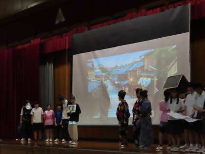 発表時、1・2年生は食い入るようにステージ鑑賞をしていました。また、3年生からは最後に今後の取組に向けてのメッセージも送ってくれました。