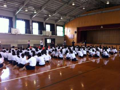 写真は6月18日 新幹線の乗車について学年全体で確認しているところです。