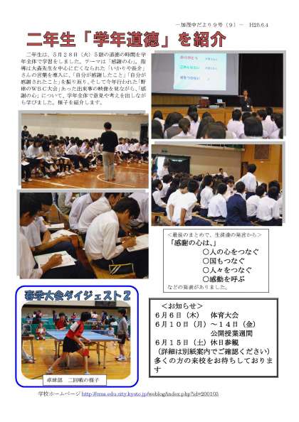 加茂川中だより9号