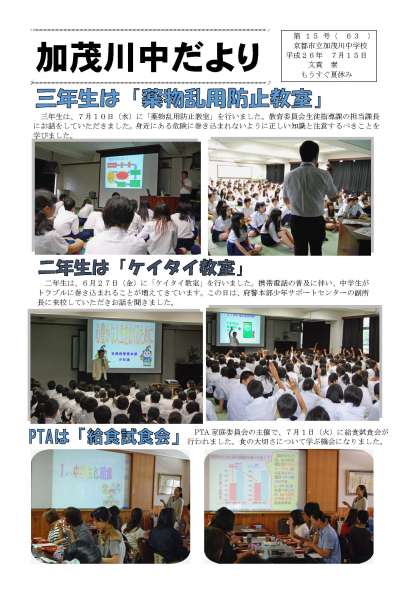 加茂川中だより15号