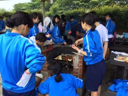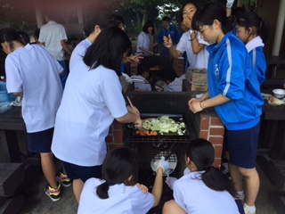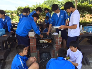 外は快晴で暑い1日ですが、バーベキューの施設は上に屋根があるので安心です。