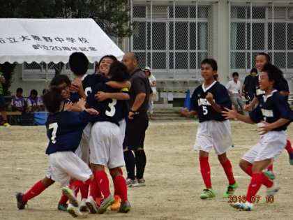 一方、昨日はサッカー部の夏季大会が大原野中学校で行われました。大淀中学校との対戦の結果2−0で見事初戦を突破しました。前半は押され気味でしたが密集からのゴールが決まり1−0。後半はキーパーのナイスセーブもあり、ミドルシュートもきまり2−0となり、試合が決定しました。