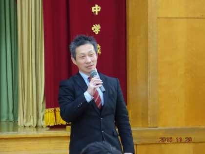今日の午後は2年生は体育館で人権についての学習をしました。講師は京都学園高校の李先生で、自らの体験をもとにした「在日」についてお話をしていただきました。話の途中には「結婚するときに何で選びますか」「顔ですか」「お金ですか」「優しさですか」「伸長ですか」という質問もあり、みんな目を輝かせて聞いていました。