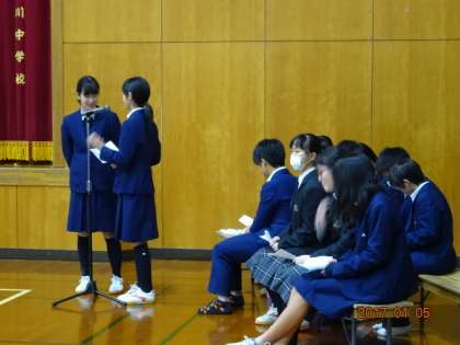 今日から第3期がはじまりました。全校集会では「社会を明るくする運動」と「吹奏楽」の伝達表彰も行いました。新しい年を迎えたとは言え、学校としては締めくくりの時期です。3年生は受験に向けて、1.2年生は次の学年への進級に向けて、共にしっかりやりましょうとメッセージを送りました。