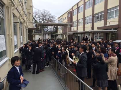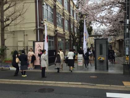 「新入生の言葉」もしっかりした態度で、これからの3年間が本当に楽しみです。式の後は桜咲く中庭で「学級写真」の撮影もおこないました。