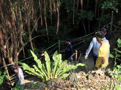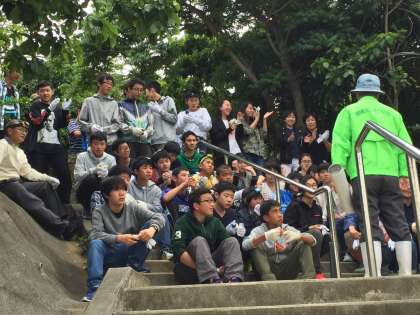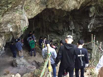 バス1号車は轟ガマに行きました。ボランティアの方から話を聞きました。ガマの中は電気を消すと真っ暗で、何も見えません。みんなで黙とうをささげました。ボランティアの方も72歳で赤ん坊の頃ですが体験をされていだそうです。改めて戦争の悲惨さを学びました。