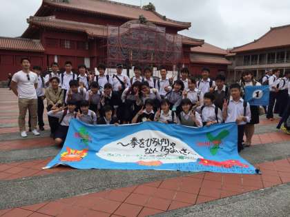 クラス写真を撮って、さあ、班別研修のはじまりです。