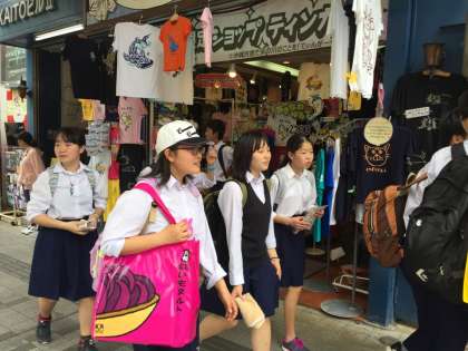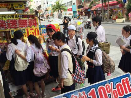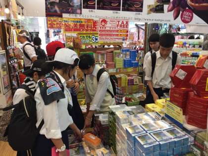 買い物が開始で、吸い込まれるように生徒が店へと入って行きます。