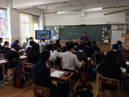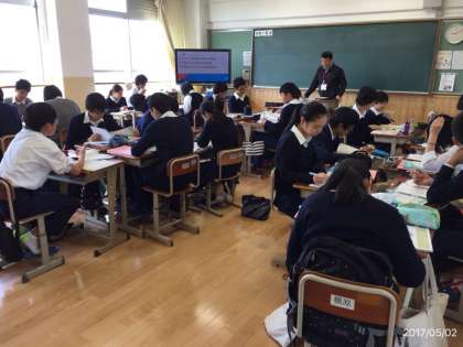 一方、教室では今日も落ち着いて生徒は学習に取り組んでいました。改修工事で美しくなった教室、壁に貼られたクラスの掲示物、本当にすばらしい環境が整いました。