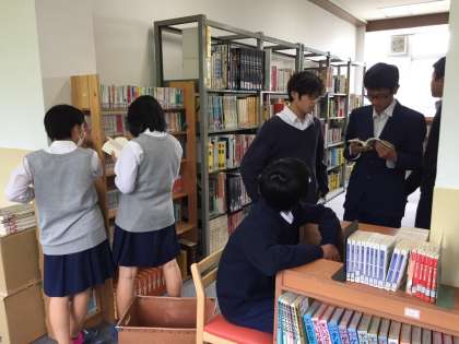 図書館の整備も終わり、本日から「図書館」が開館されました。記念すべき第1号は3年生の男子生徒でした。