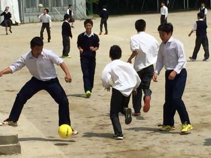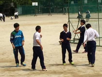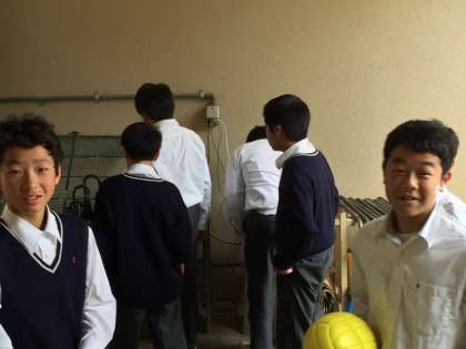 昼食後の昼休みの時間は日差しが強く、とても暑い日でした。でもグランドからは元気に遊ぶ子ども達の声が聞こえてきます。上着をぬいで、汗まみれ、ほこりまみれになりながら遊んでいます。昼休み終了のチャイムが鳴ると、一斉に「冷水機」めがけて走ります。