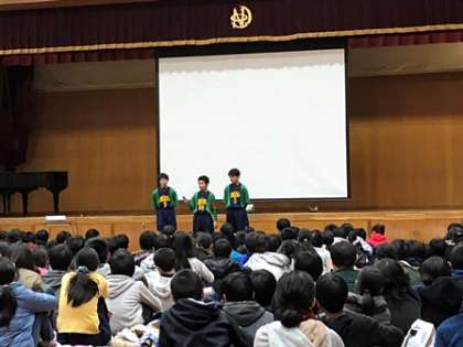 小学生からは,それぞれの学校の紹介がありました。発表者は皆堂々としていて,中学生も驚いていました。