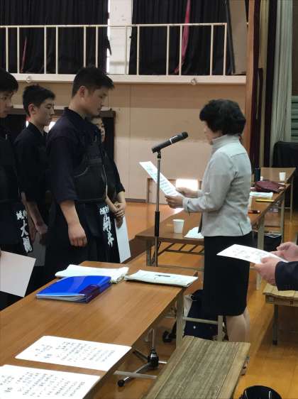 30日、深草中学校体育館にて、剣道が実施されました。男子フリーの部で、3位入賞しました。表彰式の様子です。おめでとうございます。夏季大会にはさらに上位を目指してください。