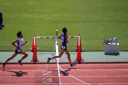 「オン・ユア・マーク」緊張の瞬間です。400m2周します。