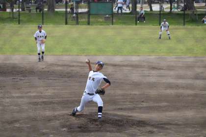 野球部は岡崎公園野球場にて3日の試合が延期となり4日、5日、6日と連戦となりました。シード校の修学院中学校を2−1、神川中学校を2−1と僅差のゲームで勝ち進み、ベスト8進出しました。しかし惜しくも二条中学校に1−2で敗れました。投手を中心に粘り強い戦いができました。夏季大会までに課題を克服し、力をつけてください。