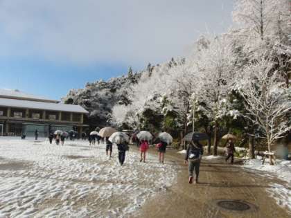 下の写真は1月7日(金)雪の中の登校の様子です。