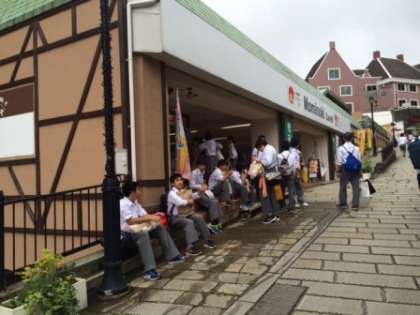 市内班別研修を終え,全員無事に集合場所へ戻ってきました。数名が慣れない土地での研修で,集合場所に迷ってしまい,バスは10分遅れで松浦へ向け出発しました。研修中は降ったり止んだりのお天気だったようですが,現在は雨も上がっています。