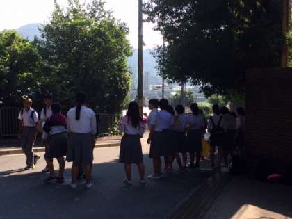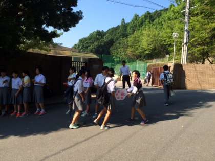 ハイタッチ運動 朝の登校風景