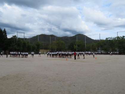 来月初めの体育大会に向けて各学年で合同練習を行っています。写真は3年生の大縄跳びの練習の様子。みんな気合が入っています。