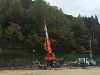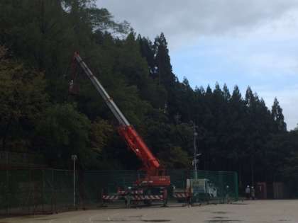 台風21号により本校グラウンド西側の斜面の大木が、倒れておりました。そのため、グラウンド通路を安全のため通行できないようにしており、不便をおかけしていました。本日、重機を使って撤去が完了しました。