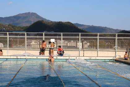 本日から1年生の部活動体験が始まりました。昨年度から土・日の1日、平日の1日に休養日を設けております。実際に体験して入部してください。水泳部はプール開きで1年生も泳いでおりました。寒そうですが、みんな明るく元気です。