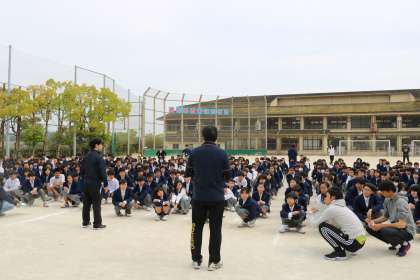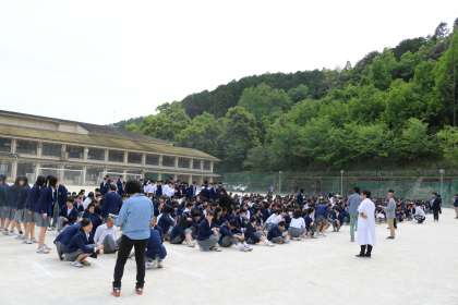 5月10日(金)6限、避難訓練を行いました。理科室から火災が発生したという想定で、全校放送が入り、グラウンドへの避難指示が出ました。約4分で全校生徒がグラウンドに避難することができました。整列・点呼を済ませて全員の避難が完了しました。本日も九州地方で大きな地震がありました。日頃から自分の命を大切にし、いざというときに備えた行動がとれるようにしましょう。
