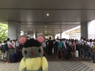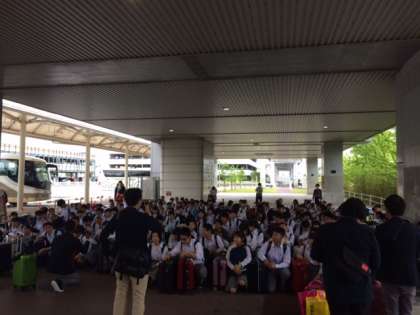 5月21日(火)雨の中5:00前から学校へ集合しはじめた生徒たちは,眠そうな顔も見せず予定通り笑顔で出発し,伊丹空港に到着しました。沖縄の天気予報は3日間とも晴れ!充実した旅行になることを期待します。この後セキュリティチェックを受け,8:15フライト予定です。